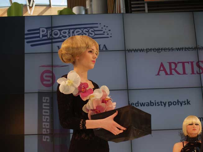 Doskonałym dowodem tego był ostatni pokaz Bianco&Nero dla firmy Progress Września i marki Artistique. Fryzury jakie zaproponował nam mistrz miały geometryczne kształty oraz kanciaste wykończenie, a to za sprawą znakomitych kosmetyków do stylizacji marki Artistique oraz bogatej kolorystyce farb, które wyróżnione zostały złotym medalem tegorocznych targów. Piękno fryzur podkreślił oryginalny wizaż modelek, którego autorami byli Małgorzata Marosze, Henia…, a całość uzupełniła pięknym tańcem Emilia Sławińska, która zabrała nas w swoje magiczne i niezwykle wrażliwe krainy podświadomości. Białe szarfy powiewające w rytm pięknej muzyki, do której tańczyły modelki – niczym marionetki, którym sznurki pociągał sam Robert Wypych oraz lustro, które królowało w trakcie pokazu podkreśliły oryginalność widowiska. Myślę, że każdy w tym pokazie mógł odnaleźć coś dla siebie, ujrzeć swoje odbicie w lustrze – wszelkie wady, zalety, zahamowania i doświadczyć niesamowitych ekspresji.